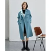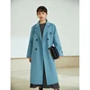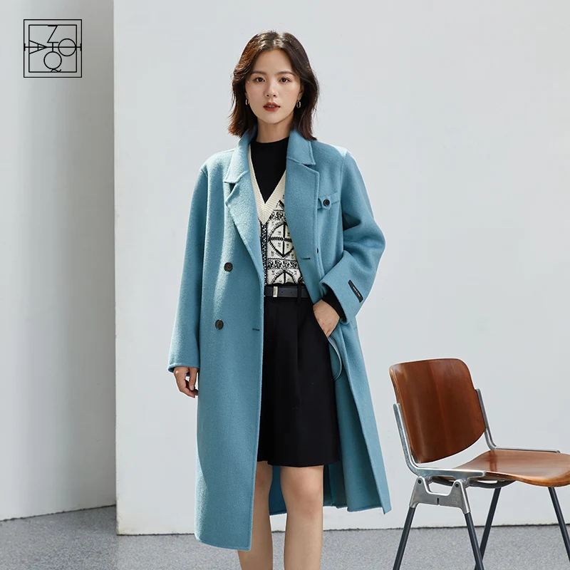 ZIQIAO Chaqueta de lana de doble cara para mujer, abrigo largo de Cachemira de estilo británico, color azul, traje de invierno
