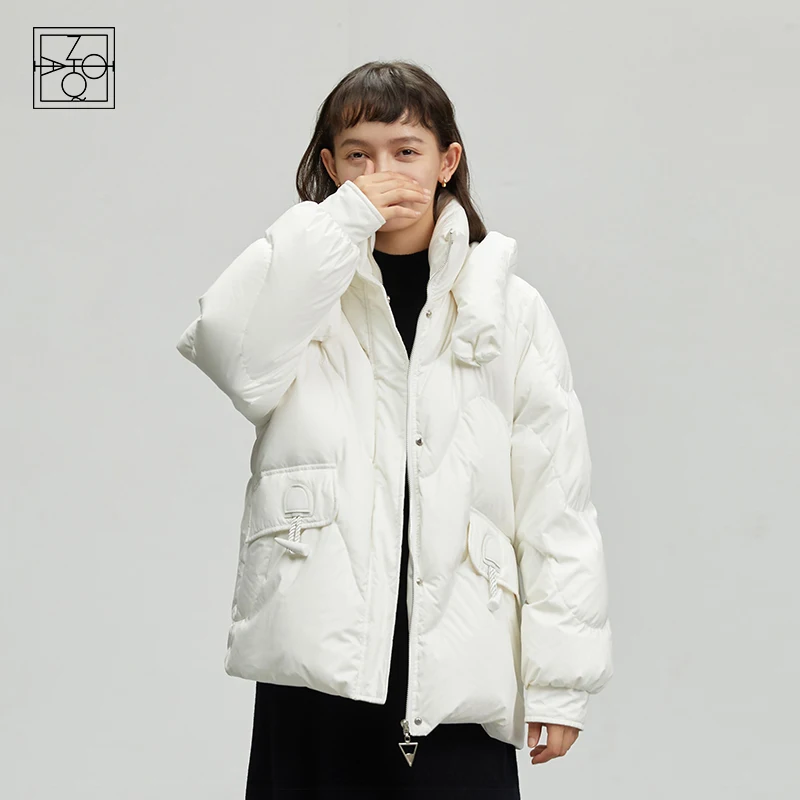 ZIQIAO chaquetas cortas de plumón de pato para mujer, abrigo holgado con capucha de plumón de pato, tejido a prueba de tres capas, cálido y grueso, para invierno