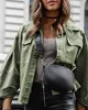 Chaqueta con cordón para mujer, chaqueta con cordón verde a la moda, tops para mujer 2021