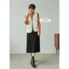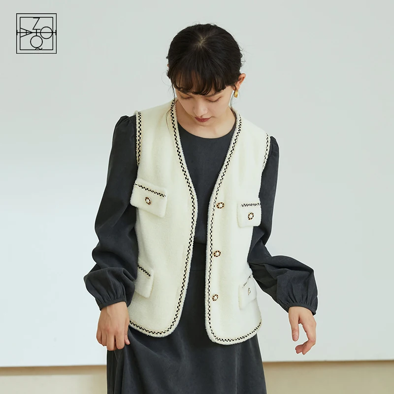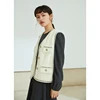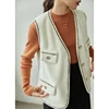 ZIQIAO Chaleco blanco acolchado con cuello en V para mujer, chaqueta con poca fragancia, Tops que combinan con todo, chalecos de diseño con bolsillo de una botonadura, Invierno