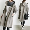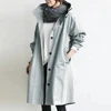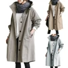 Gabardina larga con capucha para mujer, abrigo de Color liso con bolsillo, ropa de otoño, 2021