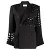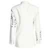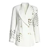 Blazer blanco calado con doble botonadura para mujer, chaqueta ajustada de manga larga con solapa, moda informal para mujer, ropa de otoño 2021