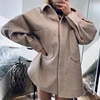 Camisa de lana con bolsillo para mujer, blusa gruesa de manga larga, abrigo largo informal, moda de otoño, 2021