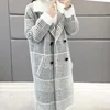 Abrigo de terciopelo de imitación de visón para mujer, abrigo largo de lana, grueso, suelto, cálido, a cuadros, Otoño e Invierno