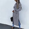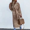 Chaqueta Retro de oficina para mujer, prendas de vestir de manga larga, abrigo de pata de gallo, abrigo informal holgado con cinturón, ropa de calle para invierno