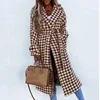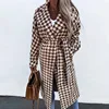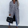 Abrigo de pata de gallo de manga larga para mujer, chaqueta Retro de oficina con solapa elegante, prendas de vestir informales holgadas con cinturón, ropa de calle de invierno