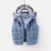 Chaqueta vaquera con capucha para mujer, chaleco versión coreana, corto, sin mangas, Primavera, 2021