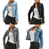Chaqueta corta de mezclilla para mujer, abrigos sólidos informales con bolsillos y agujeros, a la moda, otoño, 2021
