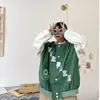 Uniforme de béisbol para hombre y mujer, chaqueta clásica holgada con personalidad, abrigo estampado de letras verdes, versión coreana de high street, novedad de Otoño de 2021