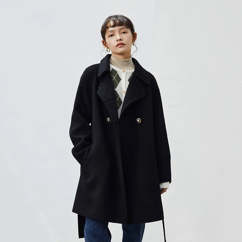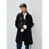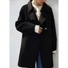 Ziqiao abrigo polar de doble cara para mujer, abrigo de lana de longitud media negra, talla pequeña, 100%