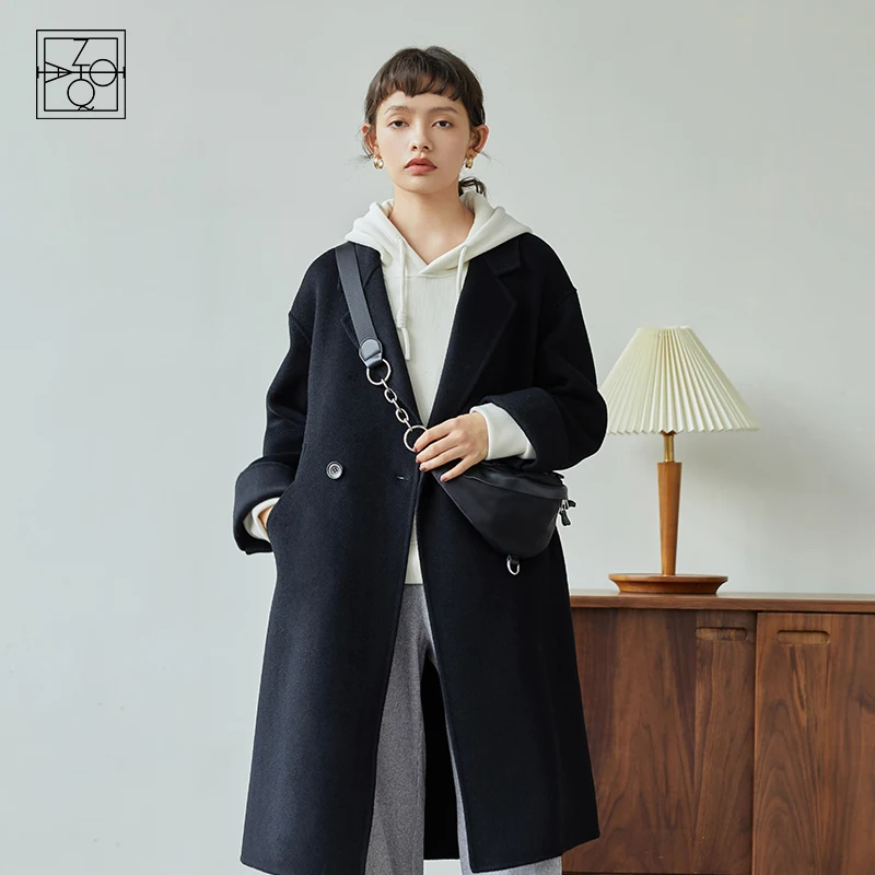 ZIQIAO Chaqueta Retro de lana para mujer, abrigo de terciopelo de lana de doble cara, longitud media, negra, que combina con todo, de invierno