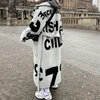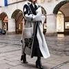 Chaqueta de Tweed con estampado de doble cara para mujer, abrigo largo holgado de manga larga con solapa y cordones, elegante, a la moda, Otoño e Invierno
