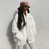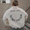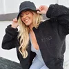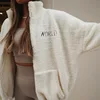 Abrigo de Cachemira de cordero para mujer, Sudadera con capucha informal con letras bordadas, chaqueta holgada de manga larga con cremallera, Y2k, otoño e invierno, 2021