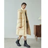 ZIQIAO Chaqueta de plumón larga para mujer, chaqueta ligera con capucha de nicho de diseño, de tres a prueba de agua, color naranja claro, invierno, 2021