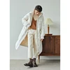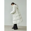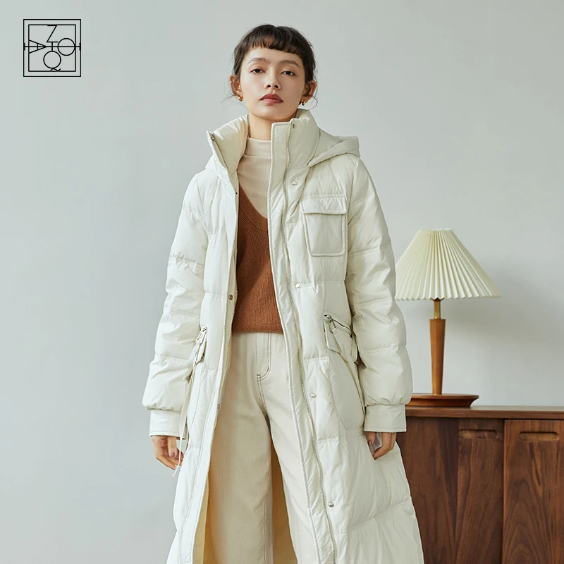 ZIQIAO Chaquetas de longitud media con capucha para mujer, abrigos cálidos con diseño de bolsillo, gruesos y rectos, color blanco, invierno, 2021