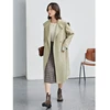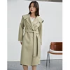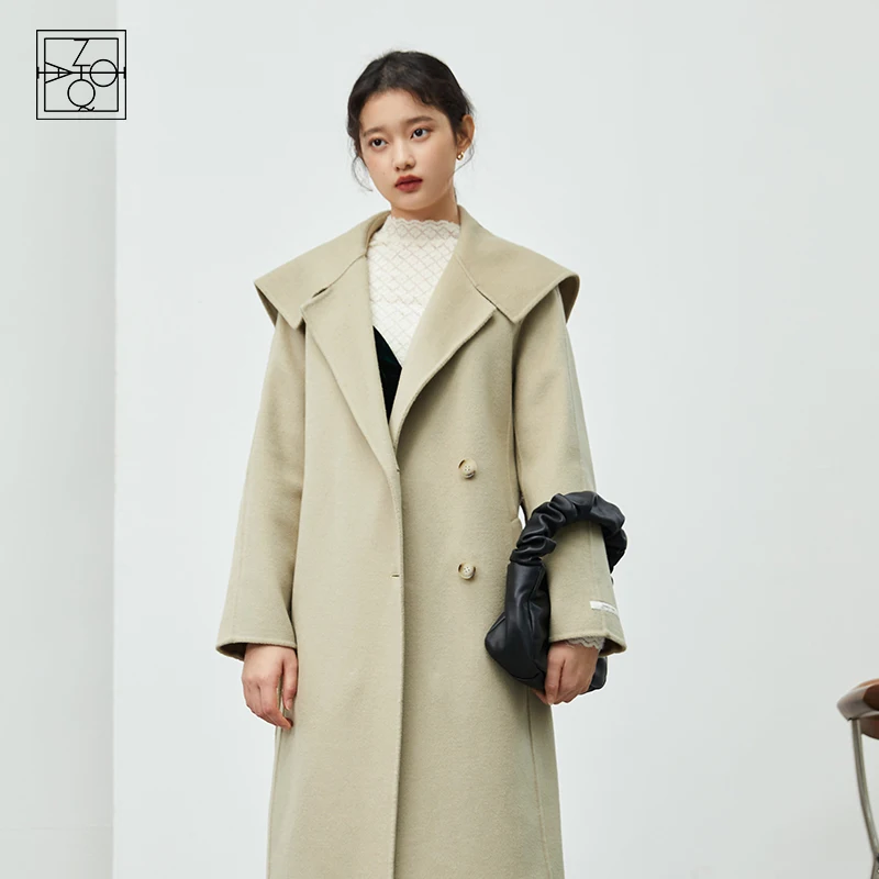 ZIQIAO Chaqueta de lana de doble cara para mujer, abrigo de lana con diseño de cinturón de longitud media y cuello azul marino, estilo universitario Beige, invierno, 2021