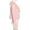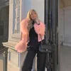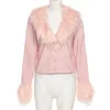 Abrigo rosa de un solo pecho con cuello de piel sintética para mujer, ropa de calle para niña, chaqueta de manga larga, prendas de vestir exteriores, Tops Y2K, Otoño e Invierno