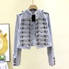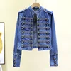 Chaqueta vaquera de estilo británico con múltiples botones para mujer, abrigos de tendencia corta con flecos, cuello levantado, estilo coreano, novedad de otoño 2021