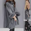 Abrigo holgado con cuello de piel sintética para mujer, Poncho cálido de longitud media para uso diario, Color sólido, otoño e invierno, 40%