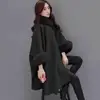 Capa de piel sintética para mujer, abrigo de Color sólido con cuello, Poncho de longitud media, holgado, cálido, para uso diario, Otoño e Invierno