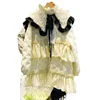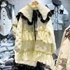 Chaqueta de plumón de pato blanco para mujer, abrigos gruesos de longitud media con cuello de muñeca estilo Lolita, puntada con volantes, prendas de vestir, 90%
