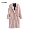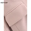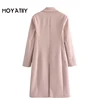 MOYATIIY abrigo grueso de lana para mujer, abrigo Vintage rosa liso con doble botonadura, Tops de manga larga para mujer 2022