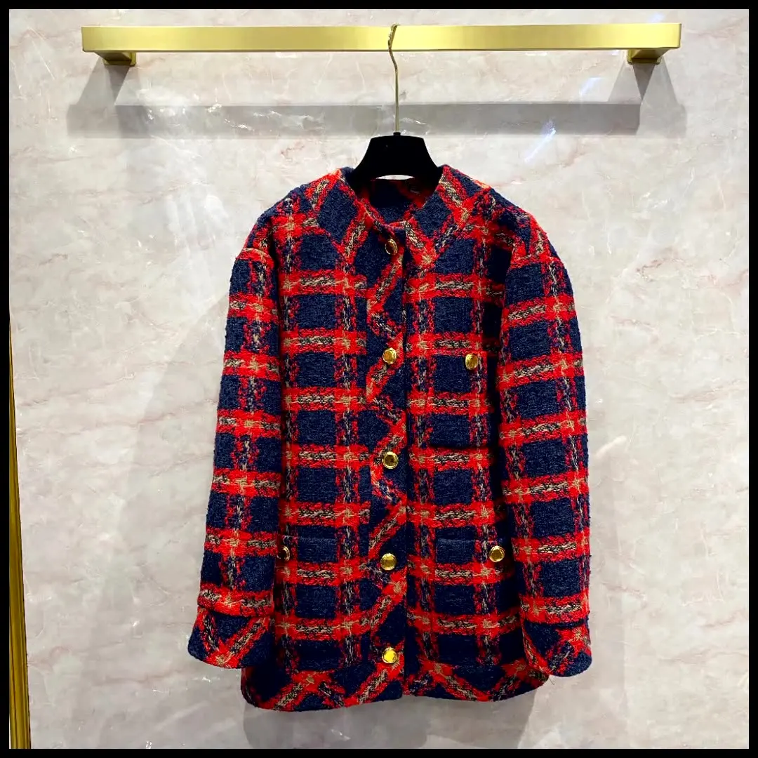 Abrigo de Tweed a cuadros para mujer, abrigo de lana de diseñador de alta calidad, estilo francés, Primavera, F036