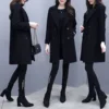 Abrigo grueso de lana con bolsillos Hepburn para mujer, abrigo negro Delgado, medio y largo, otoño e invierno, novedad de 2021