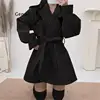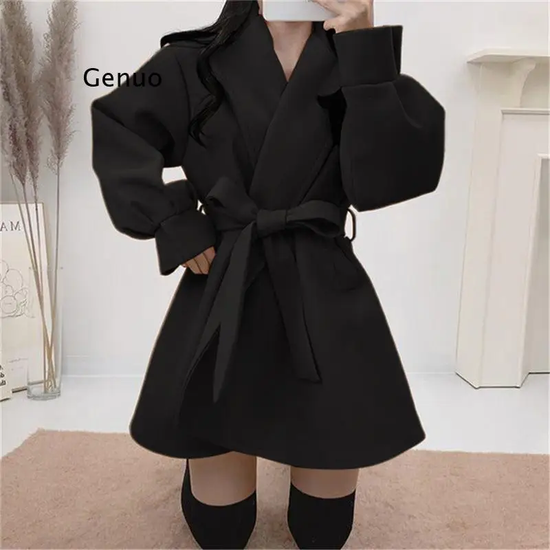 Chaqueta de lana de longitud media para mujer, cárdigan adelgazante de cintura con solapa, moda europea y americana, otoño e invierno, 2021