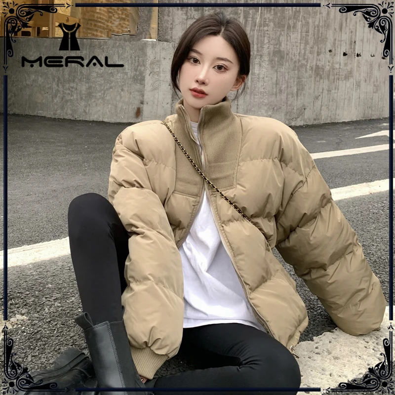 MERAL Parka gruesa de algodón para mujer, abrigo holgado con cremallera y cuello levantado, a la moda, para Otoño e Invierno