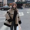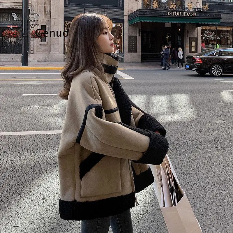 Abrigo de mezcla de lana que combina con todo para mujer, abrigo holgado con cuello vuelto, color marrón cálido, con cremallera, 2022
