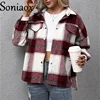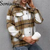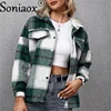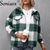 Chaqueta de Cachemira gruesa para mujer, camisa a cuadros de manga larga, chaqueta holgada informal de felpa con bolsillo a cuadros, abrigo 2022