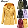 Chaqueta con capucha para mujer, impermeable de longitud media, informal, a prueba de viento, al aire libre para senderismo, chubasquero ligero de gran tamaño, primavera y otoño