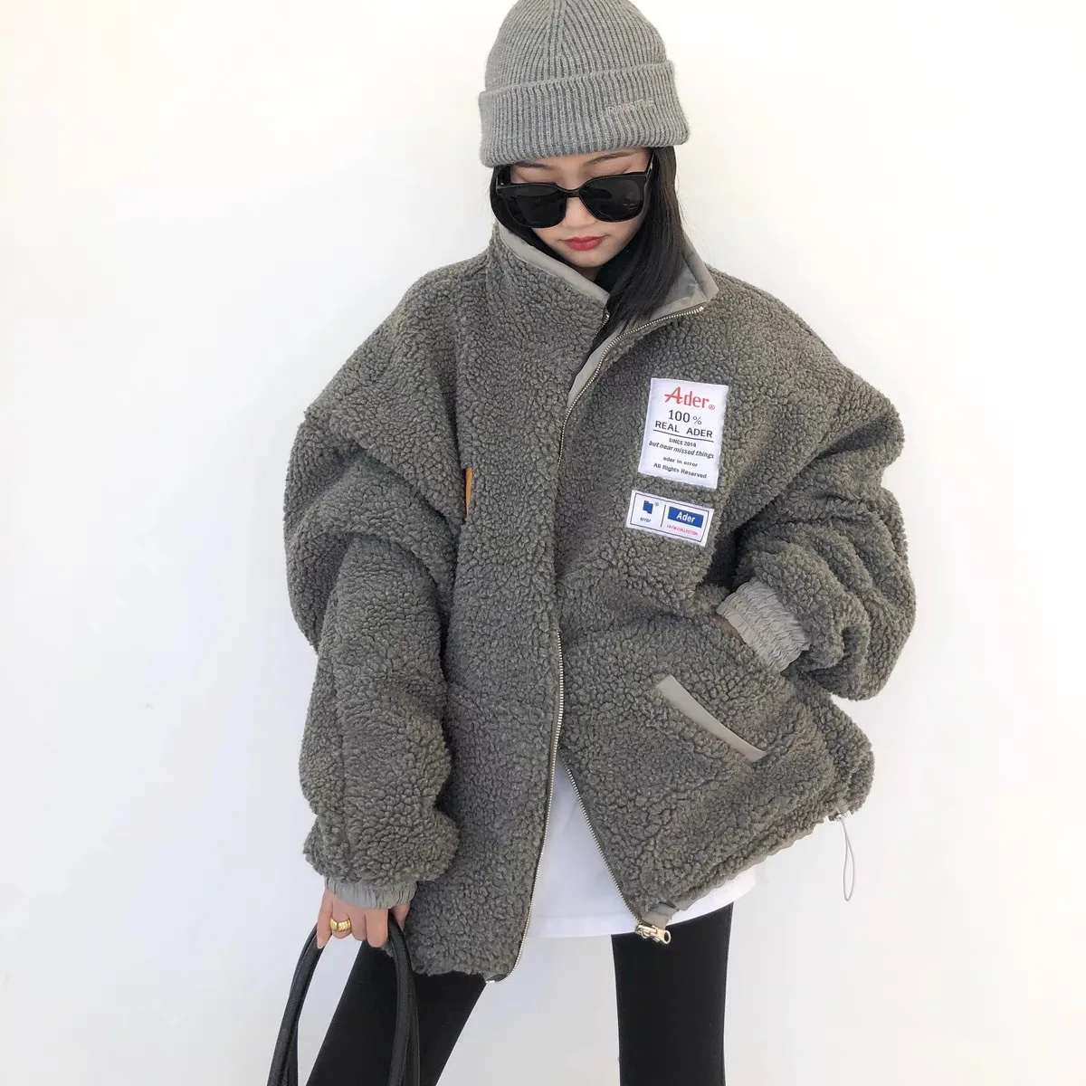 YRZS abrigo grueso de lana de cordero para mujer, abrigo cálido con cremallera y cuello levantado, ropa de lana de gran tamaño, prendas de vestir de invierno, 2021