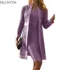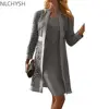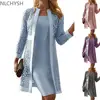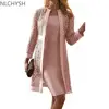 Elegante vestido ajustado informal para mujer, cárdigan de encaje liso, manga larga hasta la rodilla, cómodo, primavera y otoño, 2021