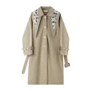 Chaqueta rompevientos de longitud media para mujer, chal desmontable de diseño versátil, abrigo sobre la rodilla, color albaricoque, nueva bufanda, Otoño e Invierno