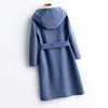 Abrigo de Cachemira de alta gama para mujer, abrigo clásico con cinturón de doble cara, otoño e invierno, 2021, abrigo de cachemira pura, 100%