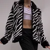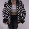 Chaqueta de punto de manga larga para mujer, rebeca con solapa de felpa estampada a rayas, a la moda, para invierno, 2022