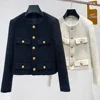 Chaqueta de Tweed negra con Perfume pequeño para mujer, chaqueta lisa de manga larga con botón dorado, para oficina, 2022