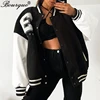 Chaqueta de béisbol de retales para mujer, chándal femenino holgado con hombros caídos, con estampado de letras de un solo pecho, ropa de calle deportiva a la moda