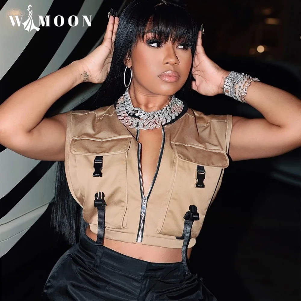 Chaleco con bolsillo y hebilla para mujer, chaqueta informal Sexy sin mangas con cuello redondo y cremallera, para otoño e invierno, 2021