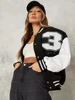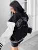 Fitshinling abrigo informal gótico de retales, chaqueta de invierno con letras bordadas, estilo urbano, centro comercial, gótico, Punk, holgado, con bolsillo deportivo