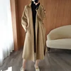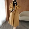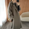 Abrigo de Cachemira de doble cara rojo neto para mujer, abrigo largo de lana holgado con cordones divididos, medio Otoño e Invierno