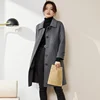 Abrigo de lana versión coreana para mujer, abrigo largo y cálido de una sola botonadura, informal, holgado, ropa de otoño e invierno