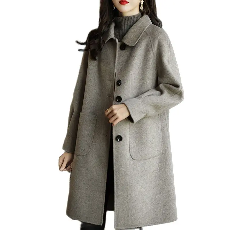Abrigo de lana suelto e informal para mujer, abrigo de lana de longitud media, estilo coreano, grueso y delgado, para otoño e invierno, A983, 2022