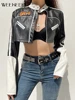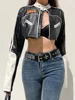 Weekeek Chaqueta corta de PU para mujer, abrigos básicos con bordado de letras, estilo Punk, retales, Harajuku, Dark Academia