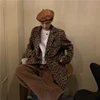 Chaqueta de traje de tela de leopardo Vintage para mujer, ropa de moda Retro, suelta, Chic, solapa, combina con todo, ropa de calle, Tops para mujer