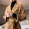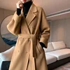 Abrigo de lana 2021 pura para mujer, abrigo de lana de doble cara, abrigo largo con cinturón, chaqueta gruesa y cálida de gama alta, novedad de 100%