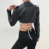 Sunny y.j. Chaqueta corta de piel para mujer, abrigo negro de manga larga con cremallera y botones, estilo Harajuku, otoño y primavera