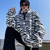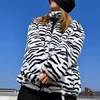 Abrigo de lana para mujer, ropa de calle holgada de terciopelo con patrón de cebra, Chaqueta de algodón para mujer, top Unisex, novedad de invierno de 2021